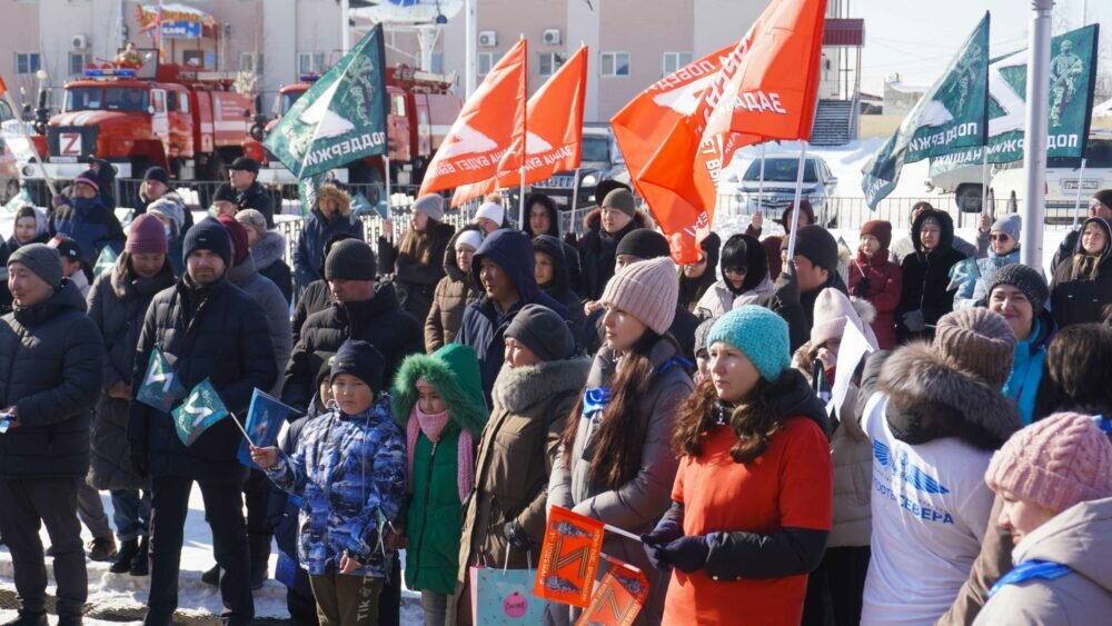 Вчера в якутском селе Маган состоялась совместная акция организованная коллективом ФКП «Аэропорты Севера» и жителями села в поддержку решения Президента Владимира Путина добиться демилитаризации и денацификации Украины «Vместе мы можем больше!», сообщают Вести14.