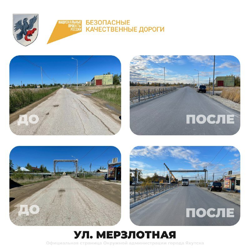 Город Якутск принимает участие в нацпроекте «Безопасные качественные дороги» с 2019 года. За пять лет, до 2024 года, в городской агломерации будет построено и приведено в нормативное состояние 85 % дорог.