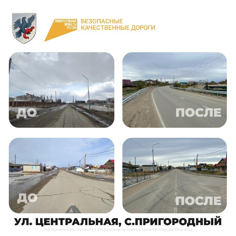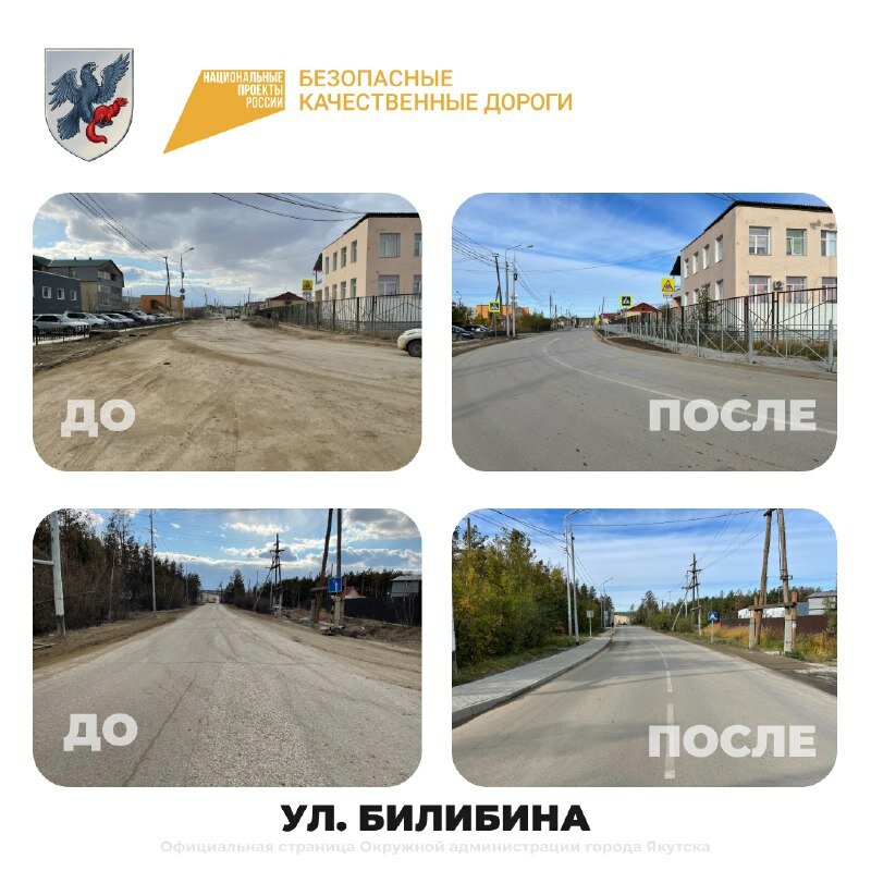 На сегодня, асфальтирование завершено по ул. Билибина, ул. Авиаторов, ул. Труда, ул. Каландаришвили, ул. Три сосны, ул. Тимирязева, ул. Федора Попова, ул. Мерзлотная, ул. Очиченко, пер Энергетиков, ул. Центральная в с. Пригородный, ул. Каландаришвили в с. Табага (2 участок), ул. Октябрьская и Ленина в с. Хатассы, ул. Уваровского в с. Кильдямцы, ул. Мархинская в мкр. Марха и подъездной дороге к Речевой школе.