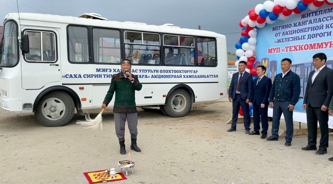 После торжественного мероприятия и алгыса автобус отправился в свой первый рейс до п. Нижний Бестях.