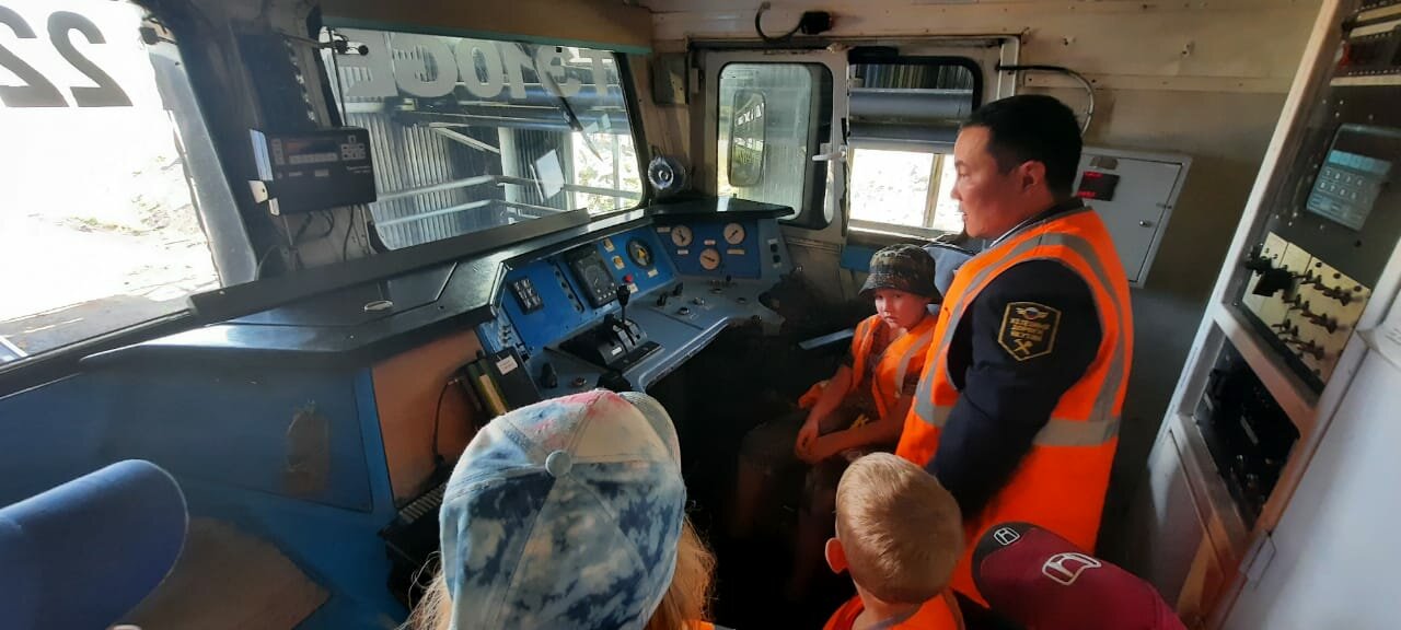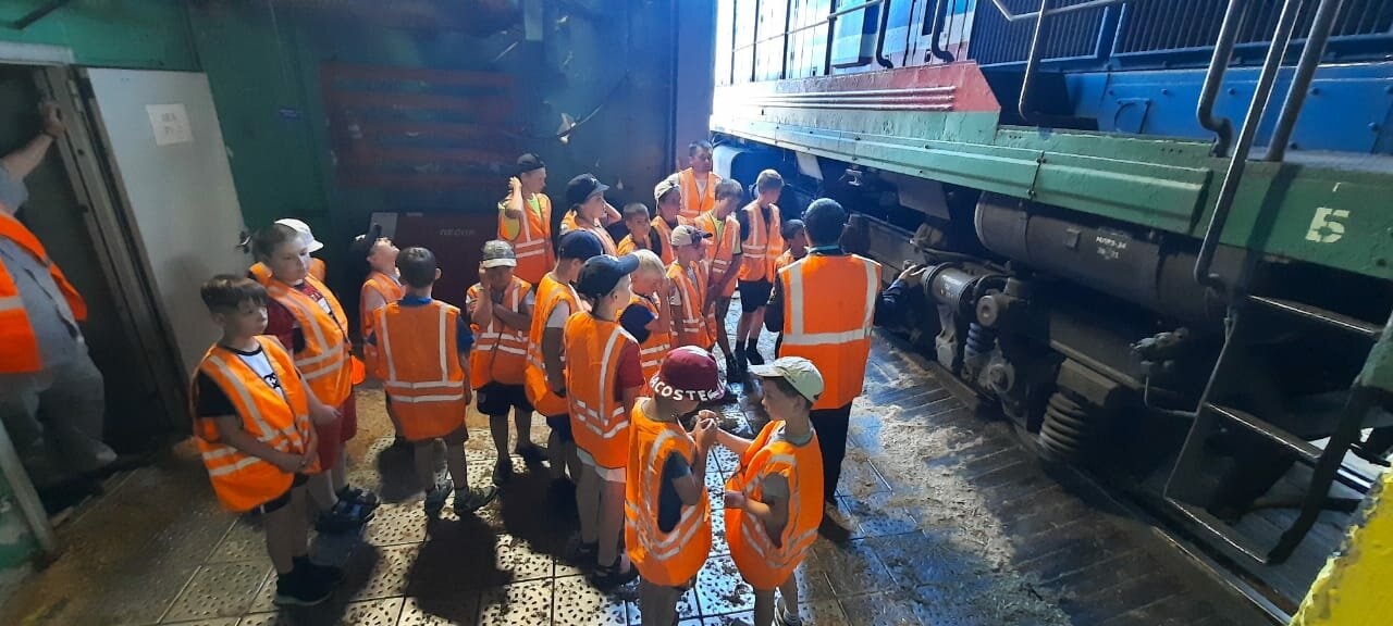 В локомотивном депо детей встретил дежурный по депо Терентий КАРМАНОВ, который рассказал им, как ремонтируются, обслуживаются и готовятся к работе локомотивы. Ребята побывали в цехах ремонта и обслуживания, рассмотрели специальные аппараты и механизмы, узнали об обточке и смене колесных пар, о стрелочном переводе и смазочных материалах, но главное впечатление оставила кабина тепловоза, где каждый смог почувствовать в себя в роли машиниста поезда. Они открыли для себя много интересных фактов об этих мощных железнодорожных машинах, которые тащат за собой многотонные грузовые и пассажирские поезда, о работе машинистов и ремонтников, узнали о важности железнодорожных профессий.