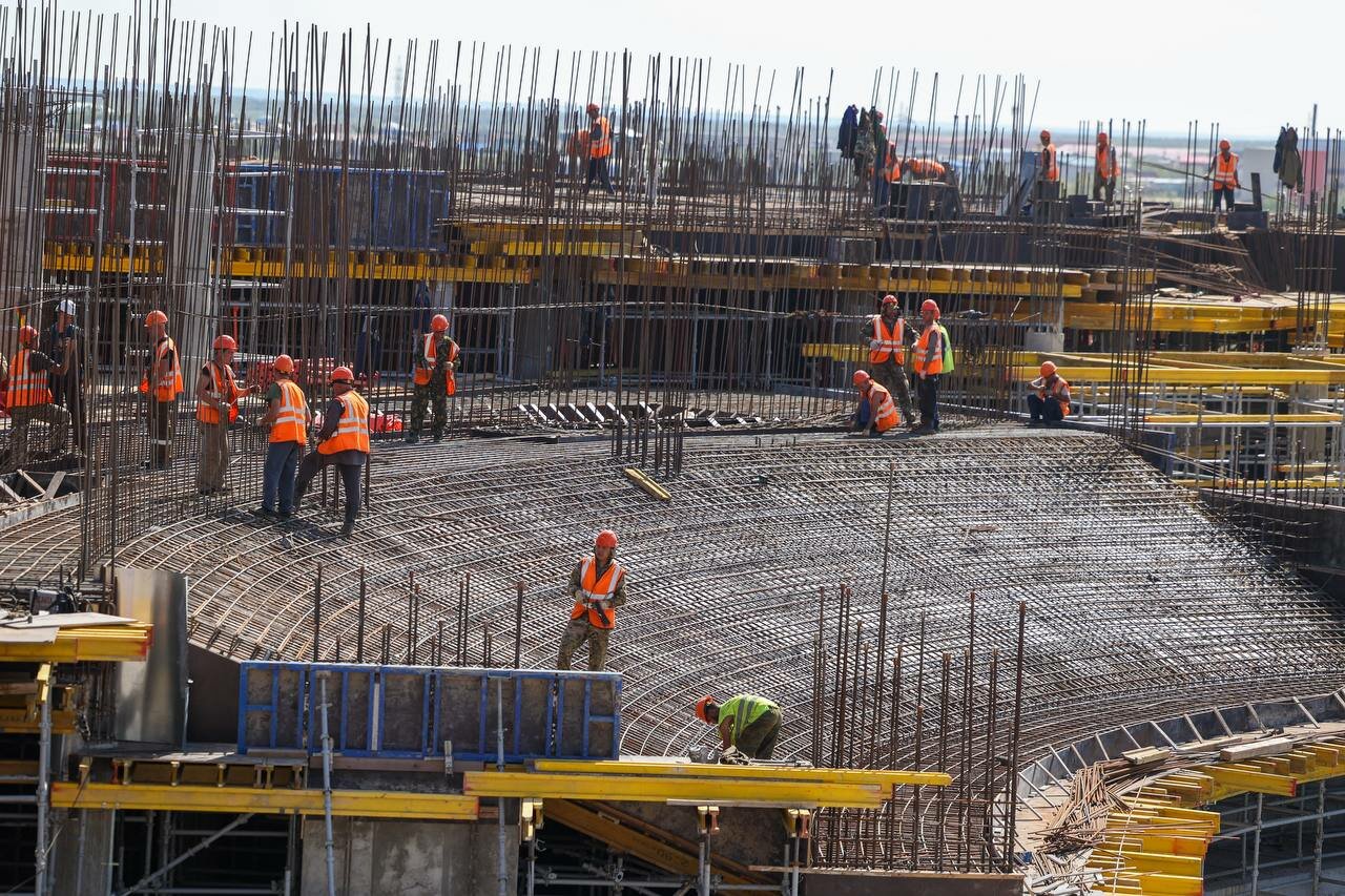 В блоке, где разместится Арктический центр эпоса, выполняется армирование трибун амфитеатра зрительного зала Театра Олонхо, армирование стен и устройство плит перекрытия на высоте выше 13 метров репетиционного зала.