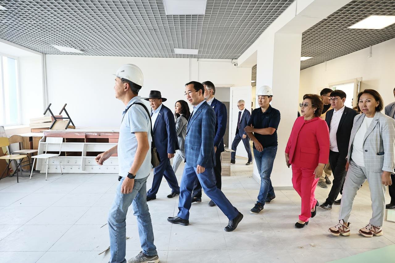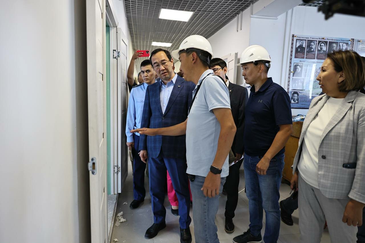 Айсен Николаев указал на замедление темпов работы и поручил для недопущения срыва плана-графика оперативно увеличить численность работников, усилить контроль со стороны муниципалитета, родителей и своевременно завершить ремонт для ввода объекта к установленному сроку.