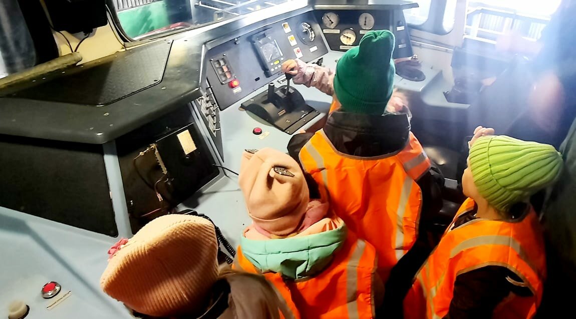 Ребята теперь знают, что паровозы остались в прошлом, а нынче по стальной магистрали Якутии во главе железнодорожного состава движется тепловоз. Они увидели огромные колесные пары и кран, который может поднять большой автобус с детьми.