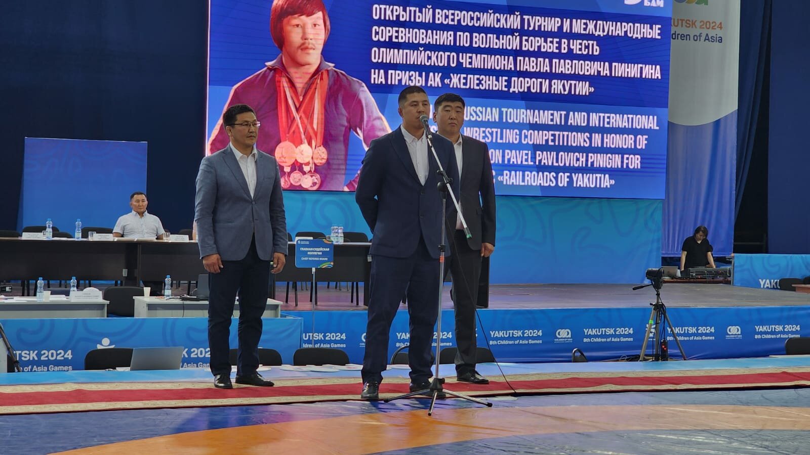 ВЕСТИ ЯКУТИИ // Сегодня состоялось торжественное открытие Отрытого Всероссийского турнира по вольной борьбе среди юношей до 16 лет и международных соревнований по вольной борьбе среди юношей до 18 лет в честь Олимпийского чемпиона, трехкратного чемпиона мира, заслуженного мастера спорта СССР Пинигина Павла Павловича на призы Акционерной компании «Железные дороги Якутии», которые продлятся до 22 июля в ЦСП «Триумф» в г. Якутске.