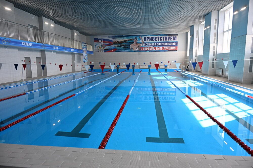 Специалисты шеф-региона выполнили комплекс работ, включающих замену кровли, установку новых оконных рам на трех этажах спортзала, монтаж витражей, облицовку фасада здания и укладку паркета. В бассейне сменили старое фильтрационное оборудование, установили вентиляцию, облицевали стены и чашу плиткой, а также уложили теплый пол. Кроме того, была полностью обновлена система канализации, а также системы теплоснабжения и водоснабжения спорткомплекса.